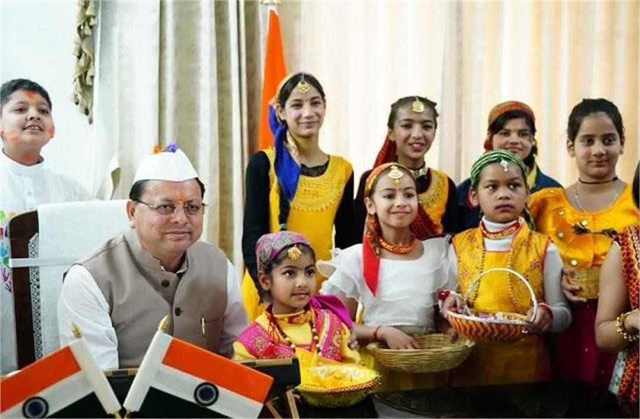 उत्तराखंड के मुख्यमंत्री पुष्कर सिंह धामी ने शासकीय आवास पर बच्चों के साथ लोकपर्व फूलदेई का उत्सव बड़े धूमधाम से मनाया। वहीं, इस मौके पर बच्चे स्थानीय वेशभूषा में सजे-संवरे दिखाई दिए। साथ ही बच्चों के चहरों पर खुशी की रंगत देख सीएम धामी भी बेहद खुश नजर आए।